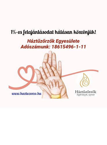 Ezúton is köszönetet mondunk mindazoknak, akik adójuk 1% -át a Háztűzőrzők Egyesülete részére felajánlják! Ezáltal hozzájárulnak ahhoz, hogy közhasznú tevékenységeinket a várandós kismamákért, kisgyermekekért, családokért végezhessük. SEGÍTSEN MA, HOGY HOLNAP MI SEGÍTHESSÜNK! Köszönettel, A Háztűzőrzők
